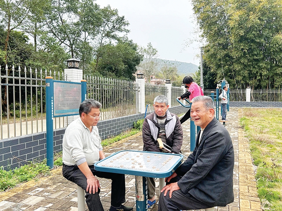 羅坑村大陂村民小組老年人在康樂園下棋聊天。 惠州日報記者黃宇翔 通訊員龍融心 攝