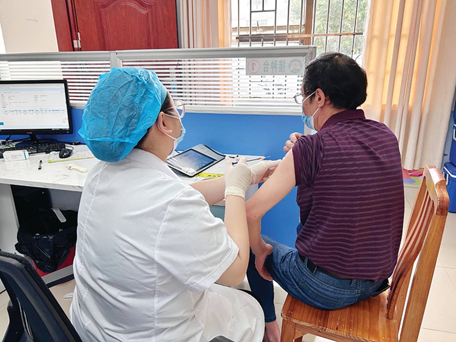 龍城街道社區(qū)衛(wèi)生服務中心內(nèi),市民正在接種新冠疫苗。 惠州日報記者黃宇翔 通訊員龍融心 攝