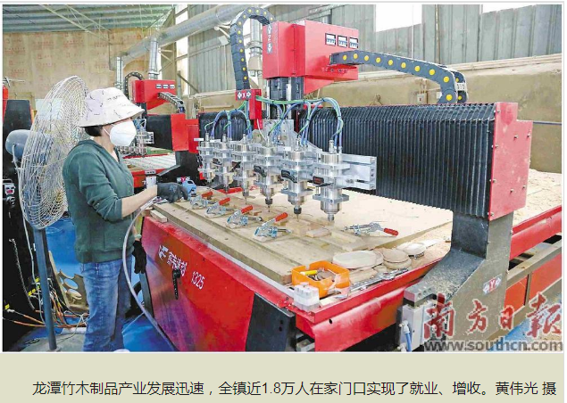 目前,龍?zhí)吨衲局破芳吧舷掠闻涮桩a(chǎn)業(yè)年產(chǎn)值超20億元,讓近1.8萬(wàn)群眾在家門(mén)口就實(shí)現(xiàn)了就業(yè)增收,竹木制品產(chǎn)業(yè)已經(jīng)成為龍?zhí)舵?zhèn)實(shí)施鄉(xiāng)村振興戰(zhàn)略、推進(jìn)新型工業(yè)化建設(shè)向縱深發(fā)展的著力點(diǎn)。