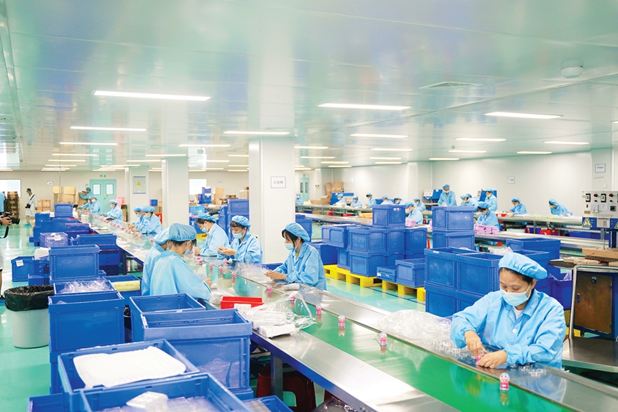 龍門工業(yè)園一企業(yè)生產(chǎn)線,工人們正抓緊作業(yè)。 惠州日?qǐng)?bào)記者湯渝杭 攝
