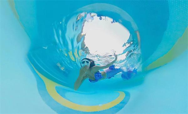 游客穿著美人魚尾巴,在水中翩翩起舞,做出平行側(cè)游、平行仰游等技術(shù)動(dòng)作,如同精靈般在海水中起舞!懊廊唆~潛水現(xiàn)在越來越流行,受到很多女性的青睞,舉辦美人魚表演賽是想和休閑運(yùn)動(dòng)接軌,希望能吸引更多的女士來體驗(yàn)世界最大的心型泳池,展現(xiàn)形態(tài)美和健康美!本皡^(qū)負(fù)責(zé)人說。