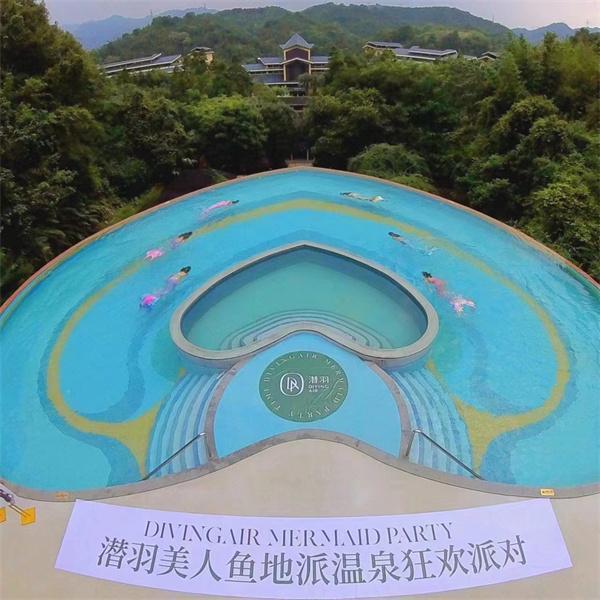 在無邊森海的襯托以及夏日的天光云影的映照之下,美人兒拖著五顏六色的尾巴,在心型水中快樂、優(yōu)雅地暢游。這充滿神話的景象,讓人不禁有種“仙女下凡”的錯(cuò)覺。據(jù)悉,該活動(dòng)將計(jì)劃挑戰(zhàn)申報(bào)世界最大規(guī)模美人魚泳池表演秀吉尼斯紀(jì)錄。