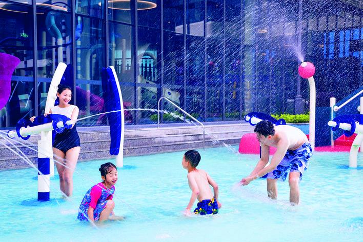 游客在龍門溫泉景區(qū)內(nèi)玩水嬉戲。惠州日?qǐng)?bào)記者黃宇翔 通訊員龍門宣 攝