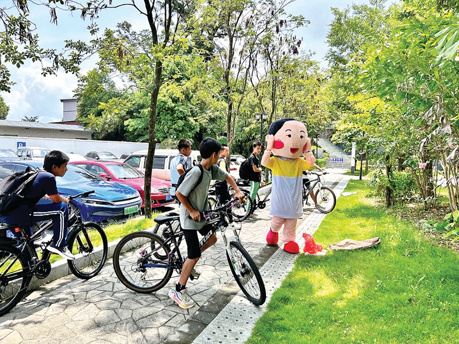 近日,一個小女孩形象的動漫玩偶走上龍門的大街小巷,與廣大粉絲見面,她活潑可愛的造型加上憨態(tài)可掬的動作,吸引了一群小朋友爭相與之互動……這個“小女孩”是龍門本土原創(chuàng)動漫《藍天一家人》的主角——“藍天”。玩偶皮套之下,則是這部動漫的創(chuàng)作者鄒奮。