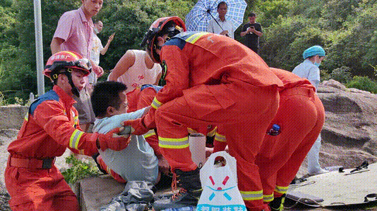 經(jīng)過長達一個半小時的接力救援,受傷人員被安全護送下山,并由醫(yī)護人員送往醫(yī)院診治。