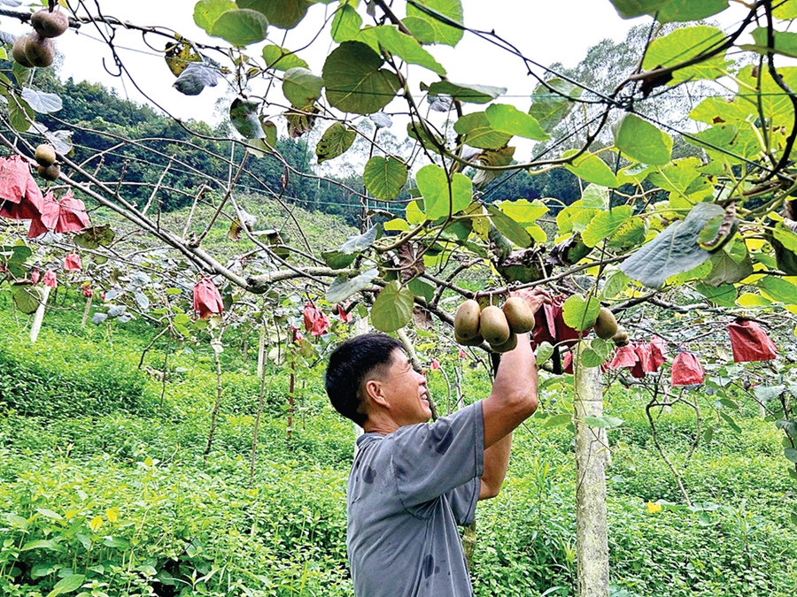 陳少添種植的紅心奇異果是從河源連平引進(jìn)的品種,名叫“紅陽”,汁多爽口,營養(yǎng)價值豐富,深受消費(fèi)者青睞。今年是他種植紅心奇異果的第8個年頭,為了保證果實質(zhì)量,他采用綠色有機(jī)種植方式,今年的奇異果結(jié)果多、甜度高,銷售前景好。目前,陳少添通過“線上+線下”的模式進(jìn)行銷售,奇異果也成為了“致富果”。