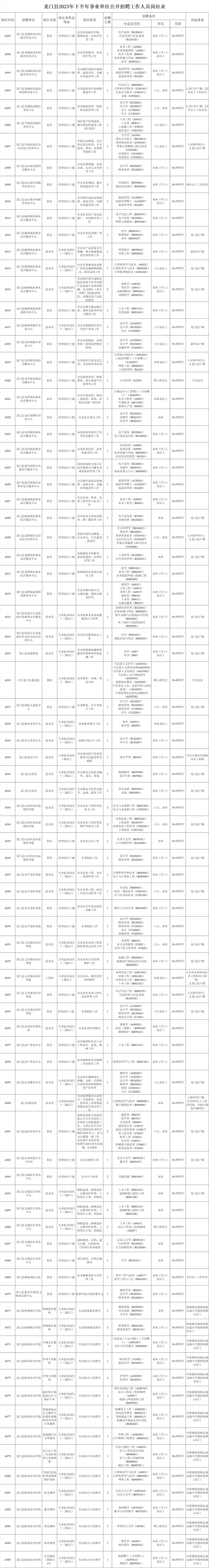 附件1:龍門縣2023年下半年事業(yè)單位公開招聘工作人員崗位表.xls