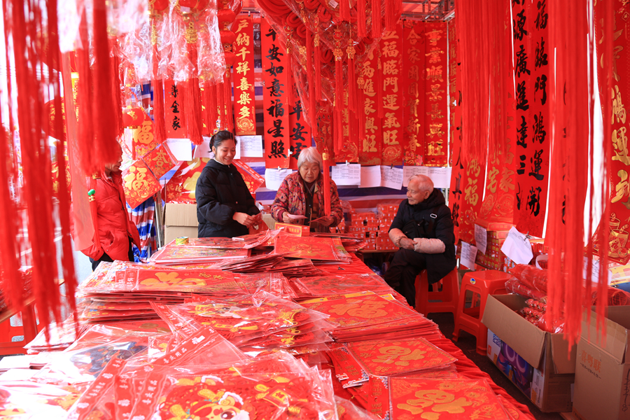 記者日前在龍門縣城谷行街、中心市場等地看到,瓜子、糖果、海味、對聯(lián)……商鋪都把節(jié)慶商品擺上貨架,不少顧客正在選購?h城年味最濃的地方,莫過于谷行街。谷行街自古以來都是龍門縣城最繁榮的商貿(mào)交易街道,走進(jìn)谷行街,濃濃年味撲面而來:對聯(lián)、年畫、中國結(jié)、紅燈籠、糖果、餅干、瓜子、花生……各種年貨商品琳瑯滿目、應(yīng)有盡有。來來往往的人們手上拎著大包小包,臉上洋溢著過年的喜悅。