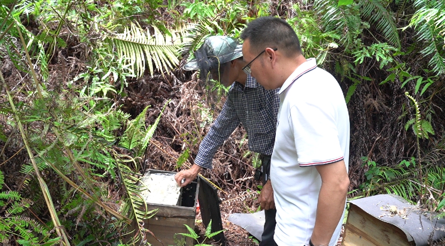 龍門供銷社養(yǎng)蜂研究所工作人員到現(xiàn)場指導。 惠州日報記者黃宇翔 通訊員龍融心 攝