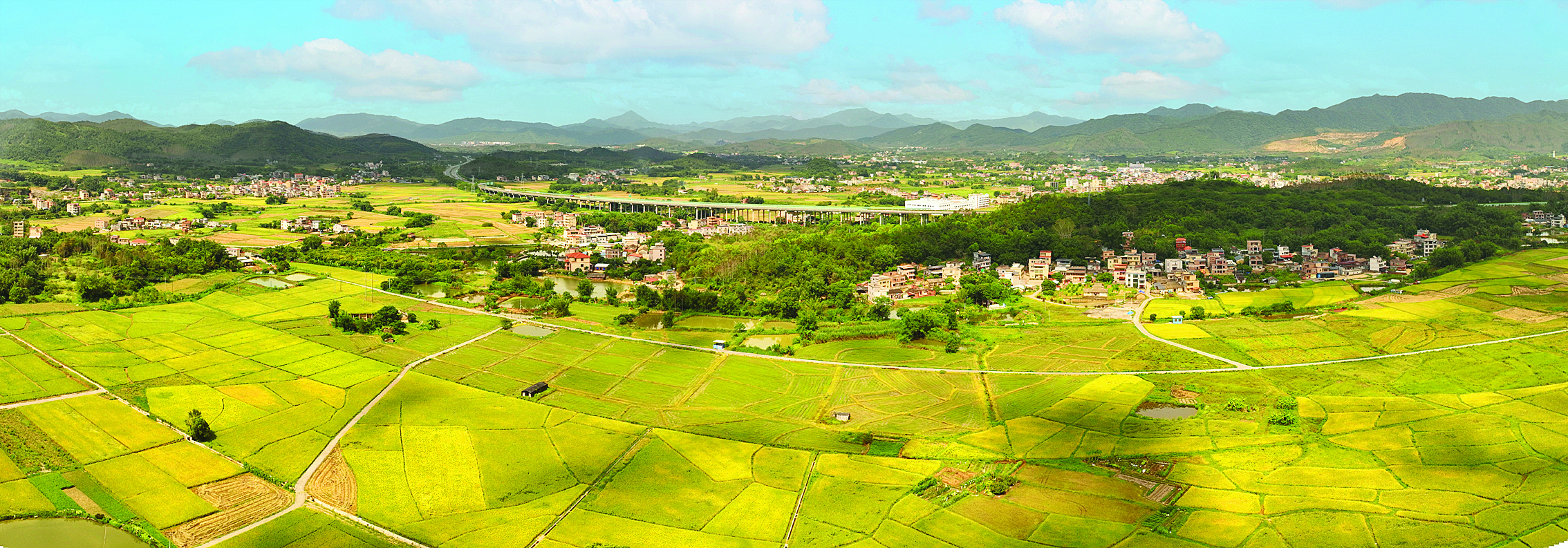 龍門縣龍江鎮(zhèn)良塘村、石前村等地成片水稻長勢良好;葜萑請(bào)記者鐘暢新 攝