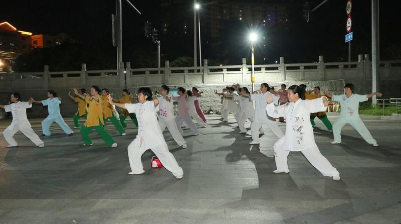 記者在現場看到,群眾踴躍參與太極拳、廣場舞、交際舞、健身、撿跑、小夜市等活動!艾F在正值暑假,我們熱烈歡迎廣大市民群眾帶著小朋友一同前來學習太極拳,強身健體!饼堥T縣太極拳協會召集人溫采君介紹,經常打太極拳有助于舒展筋骨、暢通經絡、強身健體,是群眾科學養(yǎng)生、提高健康管理能力的有益活動。