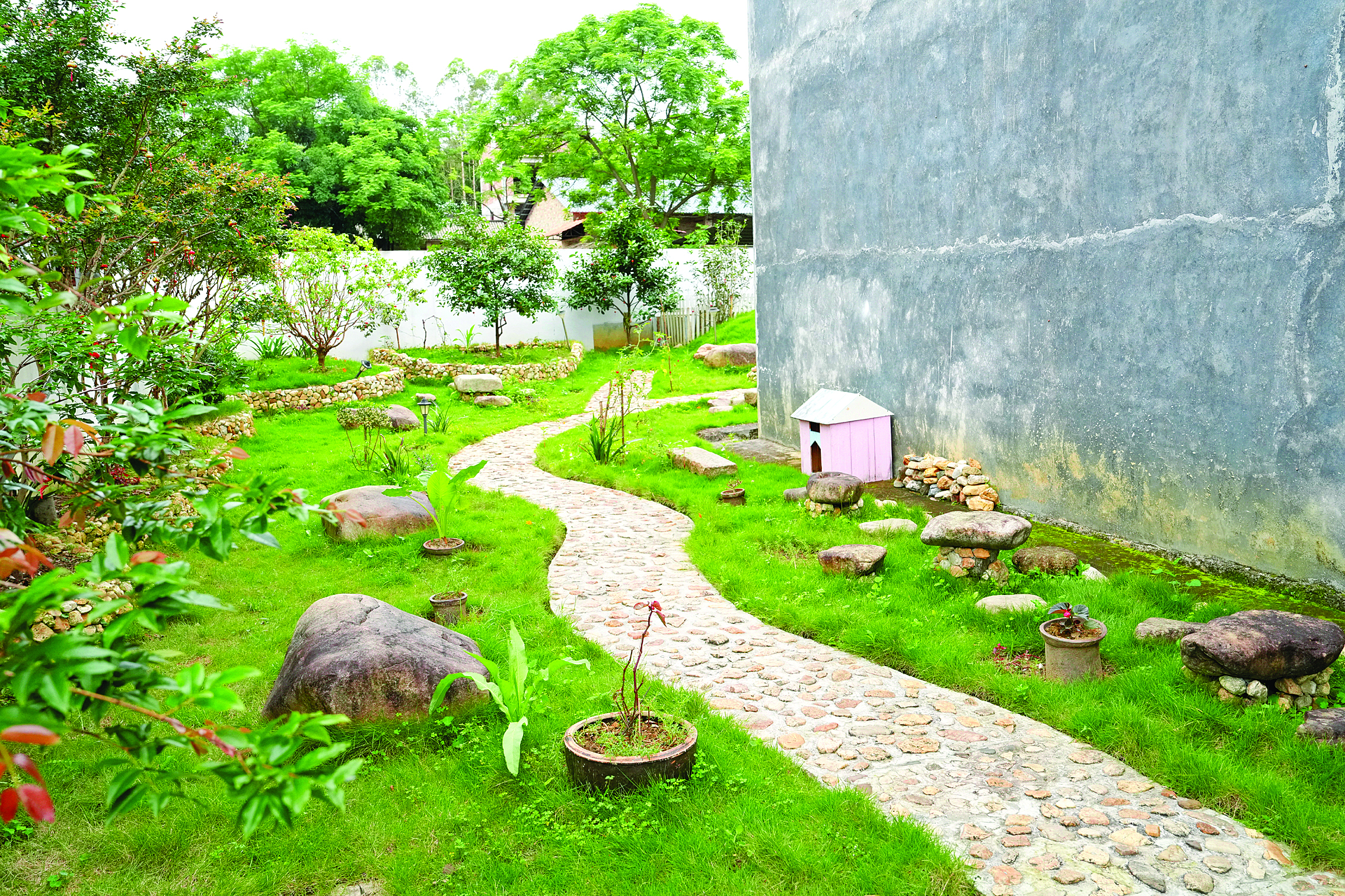 在龍?zhí)镦?zhèn)另一戶村民鐘志星家里,庭院里栽有各類花草,院子里的花壇、小徑、涼亭裝飾物等都用天然鵝卵石人工砌成,與花草灌木相映成趣,甚是好看!拔蚁矚g花草園藝,平時(shí)對園林設(shè)計(jì)也有所了解。前兩年長期待在家,有時(shí)間打理一下院子,我也是樂在其中!辩娭拘歉嬖V記者,庭院內(nèi)的每一處都是他一點(diǎn)一滴堆砌起來的。不僅是自家院子,鐘志星家門口的空地也在他和家人精心打造下,變身成為村里“口袋公園”,為大家提供了賞綠、享綠的好去處。