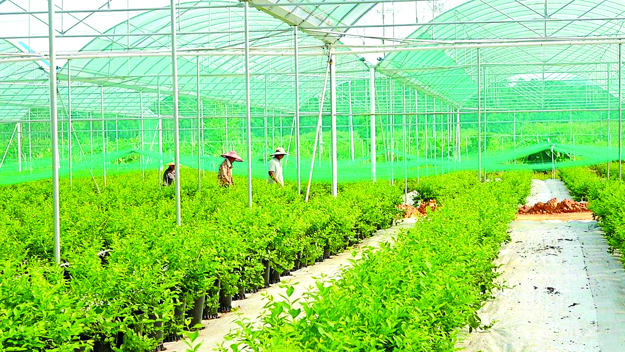 藍(lán)莓基地農(nóng)業(yè)大棚里,藍(lán)莓幼苗被精心培育在花盆中。 惠州日報記者黃宇翔 通訊員龍融心 攝