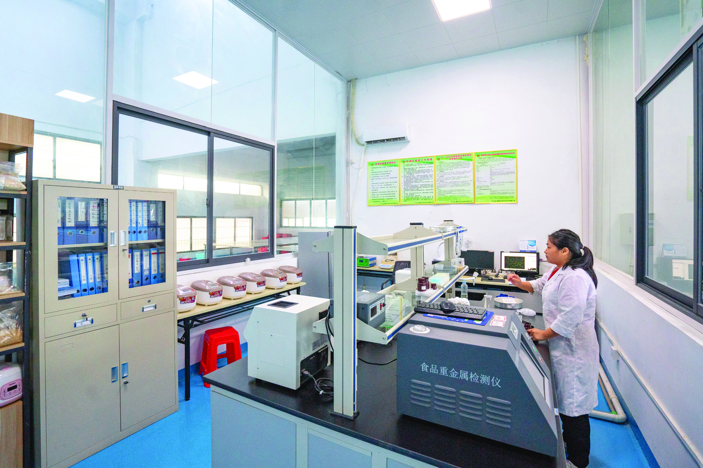 龍門(mén)縣現(xiàn)代農(nóng)業(yè)產(chǎn)業(yè)園內(nèi)工作人員正對(duì)大米進(jìn)行檢測(cè)。