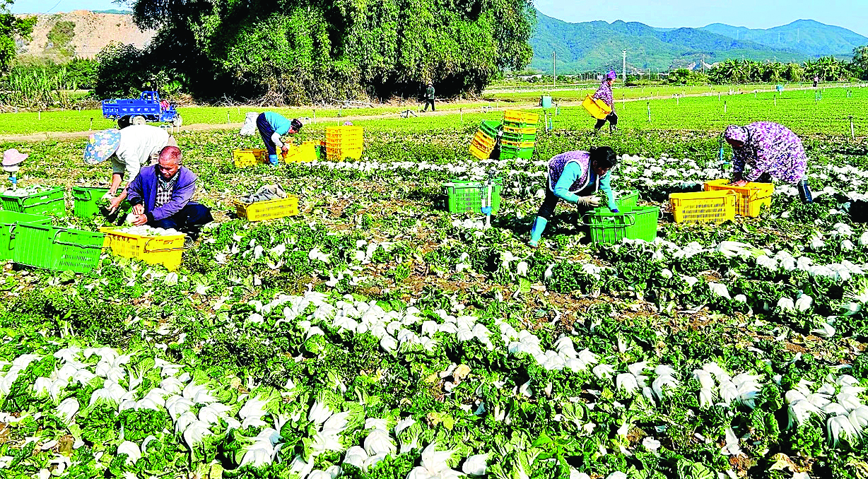 工人在田間采摘奶白菜。 惠州日?qǐng)?bào)記者黃宇翔 通訊員龍融心 攝