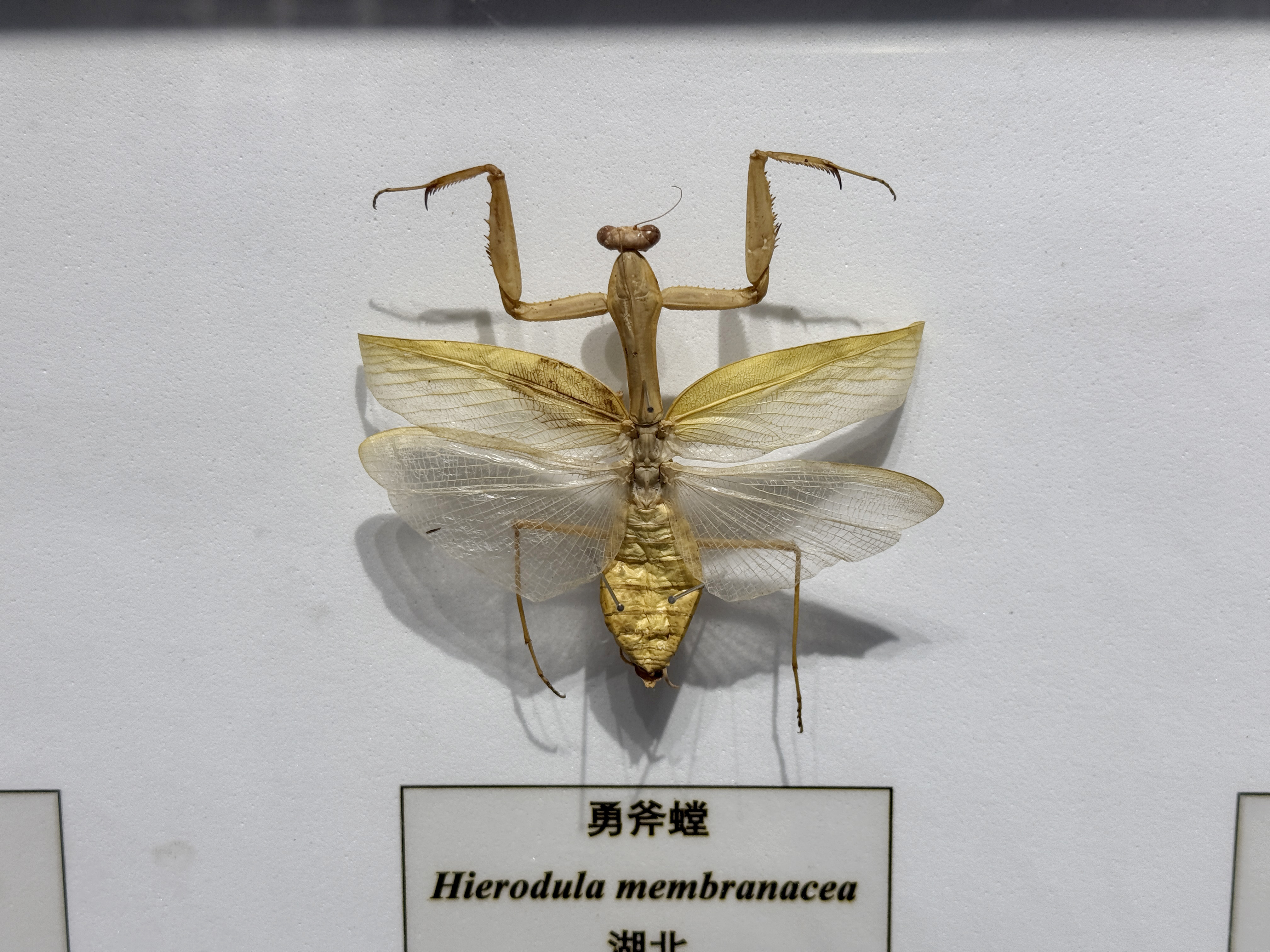 來到昆蟲標本和活體展示區(qū),這是館內(nèi)的精華部分,鱗翅目、鞘翅目等21個目的昆蟲標本琳瑯滿目,每一個標本都是一件藝術(shù)品。其中,展陳的8個“世界之最”昆蟲標本尤其引人注目,它們是中國的“奔跑速度最快昆蟲”金斑虎甲、“世界振翼最慢蝶”金鳳蝶,秘魯?shù)摹白畲蠡认x”領(lǐng)袖花癩蝗、“世界最美蝶”光明女神閃蝶,馬來西亞的“世界最重竹節(jié)蟲”扁竹節(jié)蟲、中非的“世界最毒蝶”非洲長袖德鳳蝶(又名非洲長翅鳳蝶)、厄瓜多爾的“世界最大兜蟲”長戟大兜蟲以及澳大利亞的“世界最美鍬甲”彩虹鍬甲。