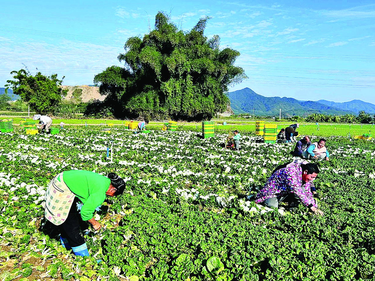 惠州日?qǐng)?bào)訊 (記者黃宇翔 通訊員龍融心)初冬時(shí)節(jié),龍門縣平陵街道祖塘村呈現(xiàn)出一派豐收的景象。在祖塘村沃柑種植基地,記者看到沃柑樹郁郁蔥蔥,金黃色的沃柑掛滿枝頭。在蔬菜種植基地,數(shù)十名工人正在田間忙碌,熟練收割蔬菜。一株株飽滿鮮嫩的奶白菜整齊地放入菜籃中,等待著被運(yùn)往市場(chǎng)。