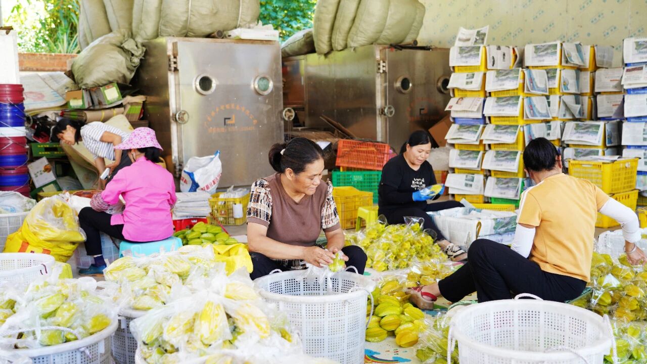 合作社工人對楊桃進行分揀、打包;葜萑請笥浾唿S宇翔 通訊員龍融心 攝