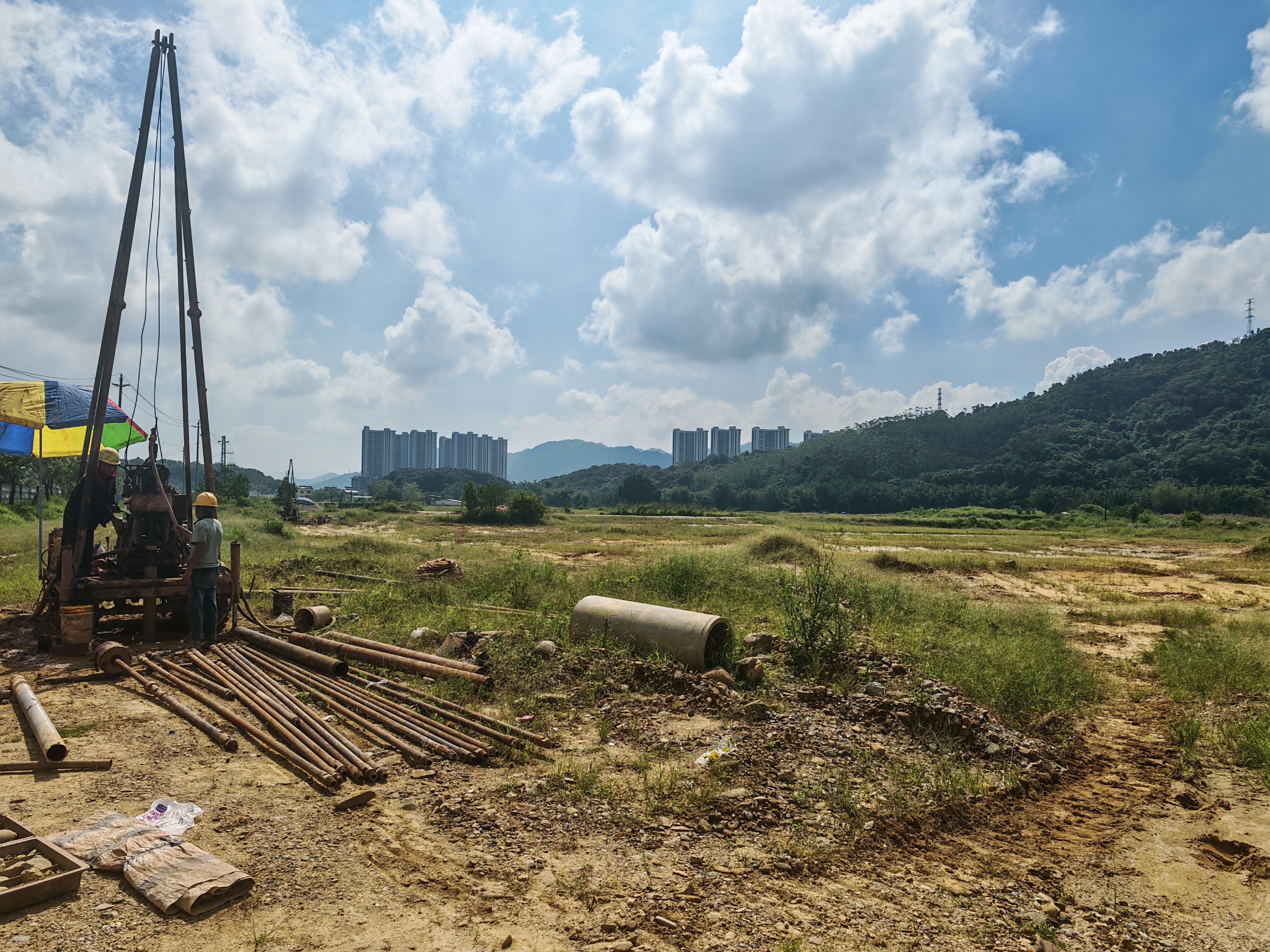 9月26日上午,隨著5臺(tái)勘察鉆機(jī)依次進(jìn)場(chǎng)、穩(wěn)穩(wěn)落位,鉆頭入土哐當(dāng)哐當(dāng)?shù)穆曇繇懫,?biāo)志著龍門縣環(huán)兩山奧飛文化科技園項(xiàng)目地質(zhì)勘察工作正式拉開序幕。