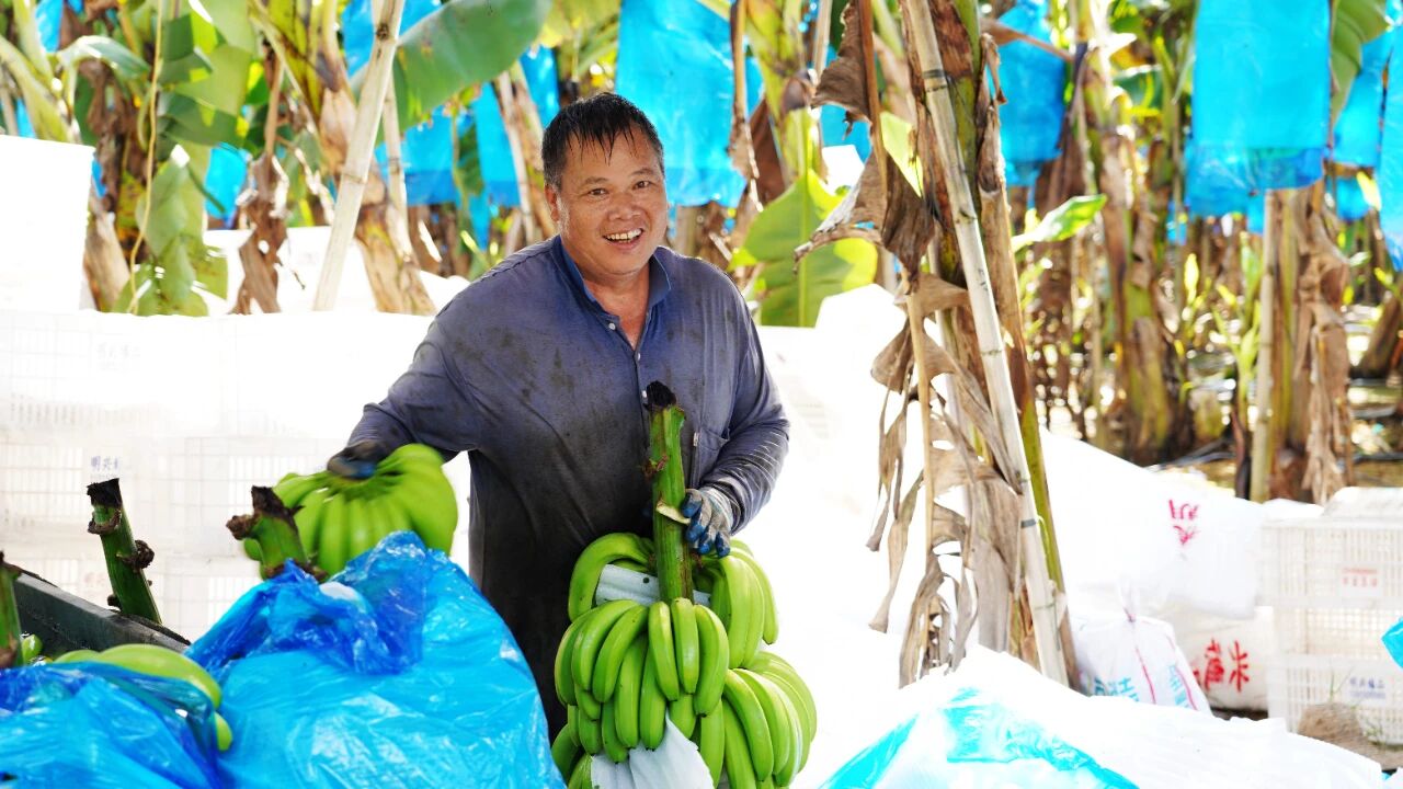 采收現(xiàn)場,工人們分工協(xié)作,精準(zhǔn)挑選成熟蕉串,利落地砍下果軸,再用竹扁擔(dān)挑起百斤重擔(dān),將果實完好運至田頭運輸點。采收后的香蕉被迅速分割成一梭一梭,經(jīng)清洗、分揀、包裝等初步處理后作為優(yōu)質(zhì)農(nóng)產(chǎn)品投放市場。