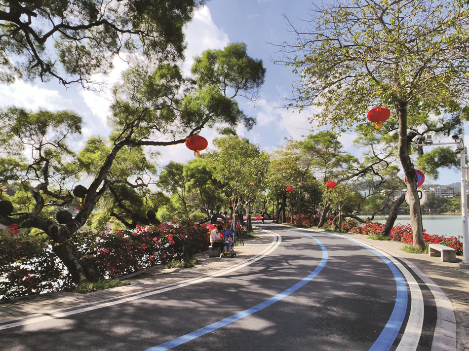 “春夏賞魚木,秋冬看梅花(三角梅)!苯,惠州西湖陳公堤三角梅盛放,紅的粉的美艷奪目,為湖堤增添靈動色彩,成為網(wǎng)紅打卡點。