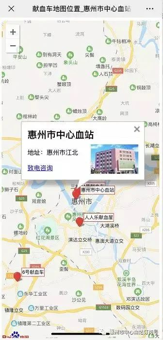 市民可以關(guān)注血站微信公眾號“惠州獻(xiàn)血”,在菜單去獻(xiàn)血-->查詢獻(xiàn)血點(diǎn)位置。如有需要,也可以撥打0752-2818708,可為您匹配最近的獻(xiàn)血點(diǎn)。