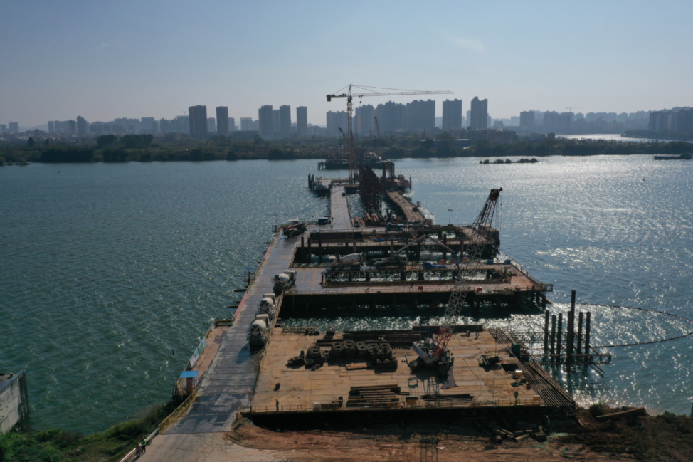 鵝城大橋位于惠城區(qū),主線全長(zhǎng)2974米,按雙向6車道設(shè)計(jì)。其中,橋梁全長(zhǎng)約1119.5米,主橋長(zhǎng)約460米,斷面寬45米。全橋共180根樁基,目前主橋90根樁基已全部完成,承臺(tái)、墩身施工正全面展開。位于江東一號(hào)路的引橋已完成55根樁基,承臺(tái)全面進(jìn)入施工,目前已經(jīng)完成3個(gè)。