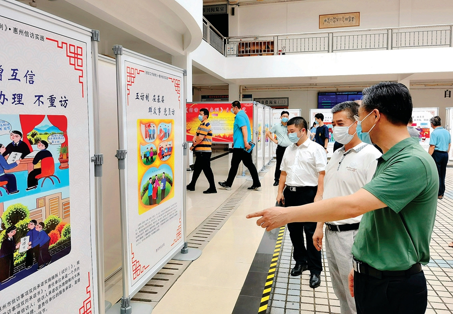 廖志華介紹,近年來,市信訪局反復探索,始終以打造群眾滿意信訪為目標,把信訪工作改革創(chuàng)新擺在重要位置,不斷推陳出新,在全鏈條中探索出具有惠州特色的信訪工作新路子,有效解決了一大批群眾急難愁盼問題。如在源頭預防上,探索信訪“治未病”,扎實開展信訪公益警示宣傳,法治信訪更深入人心;在案件受理上,實施雙向承諾,開出陽光清單,承諾辦結(jié)時限,明確案件責任人并向群眾提供聯(lián)系方式,案件辦理全程接受群眾“好差評”反饋;在解決問題上,完善健全多元調(diào)處化解機制,先后引進社工、律師、心理咨詢師等社會力量,探索引入“兩代表一委員”、行業(yè)領(lǐng)域?qū)<、人民調(diào)解員、基層黨員等力量參與社會矛盾糾紛化解;在跟蹤服務上,打造信訪工作黨建品牌,建立基層黨員聯(lián)系服務信訪群眾“五訪”機制,打通解決群眾訴求的“最后一公里”。