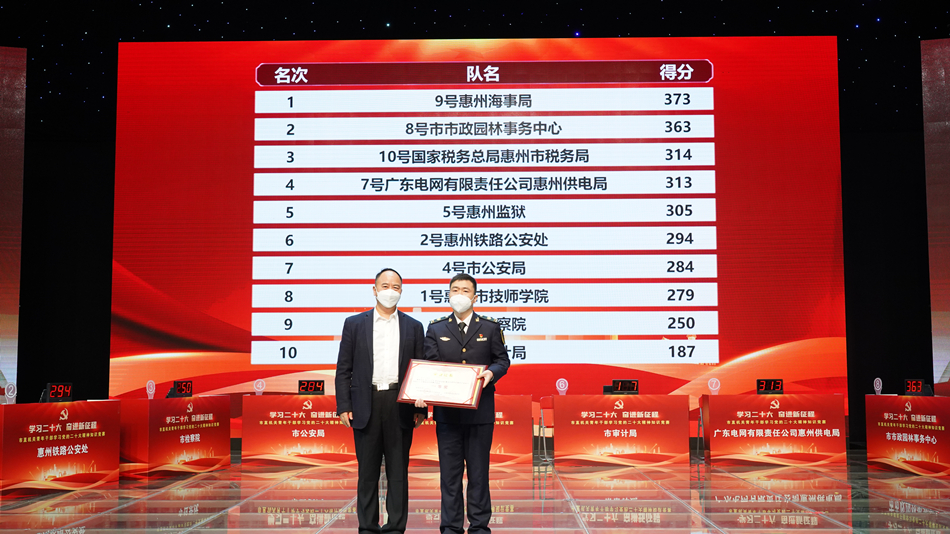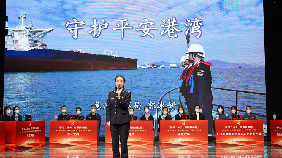 1月10日,由中共惠州市直屬機(jī)關(guān)工作委員會(huì)、中國共產(chǎn)主義青年團(tuán)惠州市委員會(huì)聯(lián)合主辦的“學(xué)習(xí)二十大 奮進(jìn)新征程”知識(shí)競賽成功舉辦,惠州海事局獲得初賽、決賽雙第一的好成績。