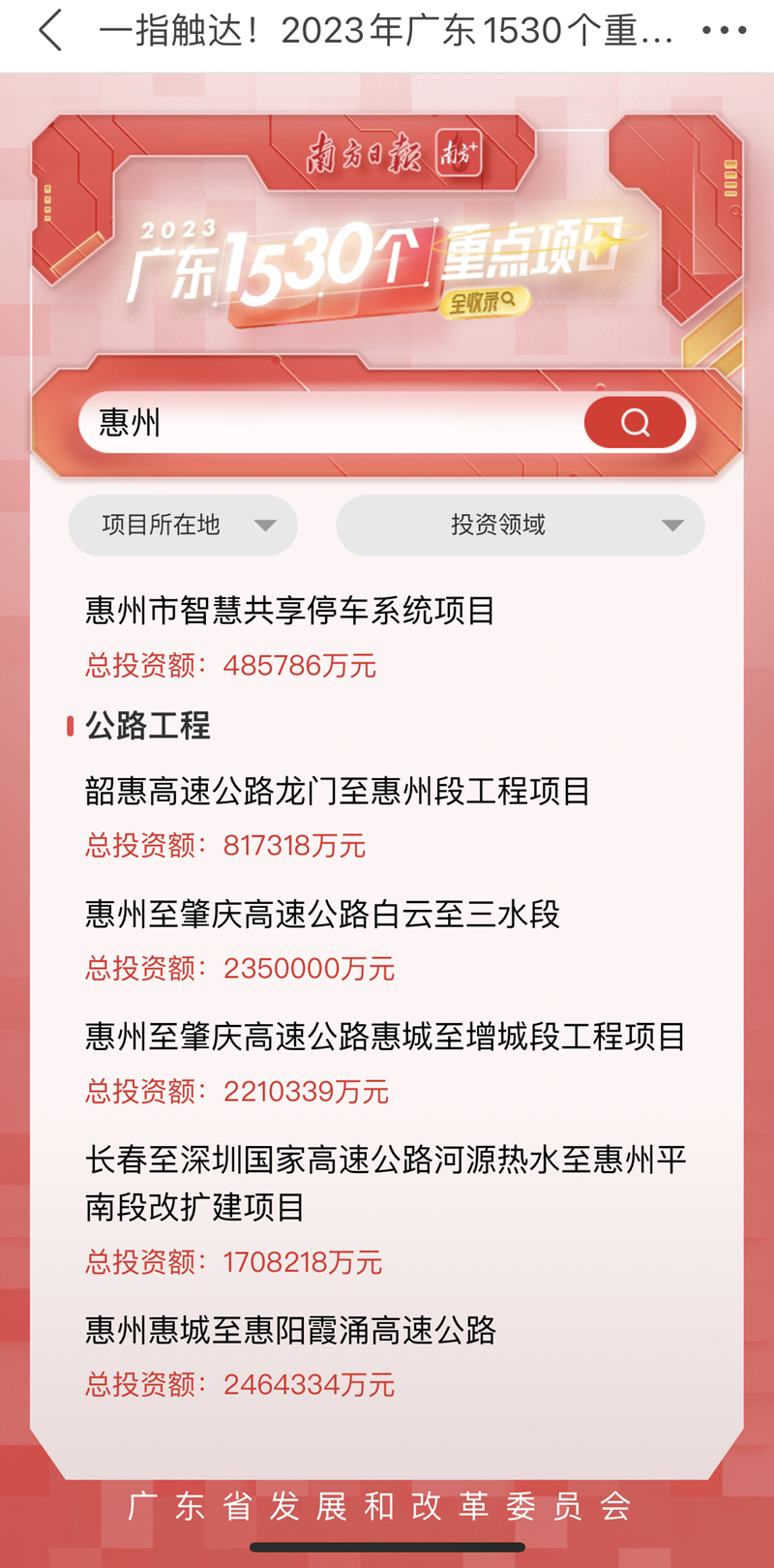 1月12日,廣東省十四屆人大一次會議期間,南方日報、南方+客戶端聯(lián)合廣東省發(fā)展改革委,推出“大項目搜索引擎”融媒體產(chǎn)品,公布了2023年廣東1530個重點項目情況。