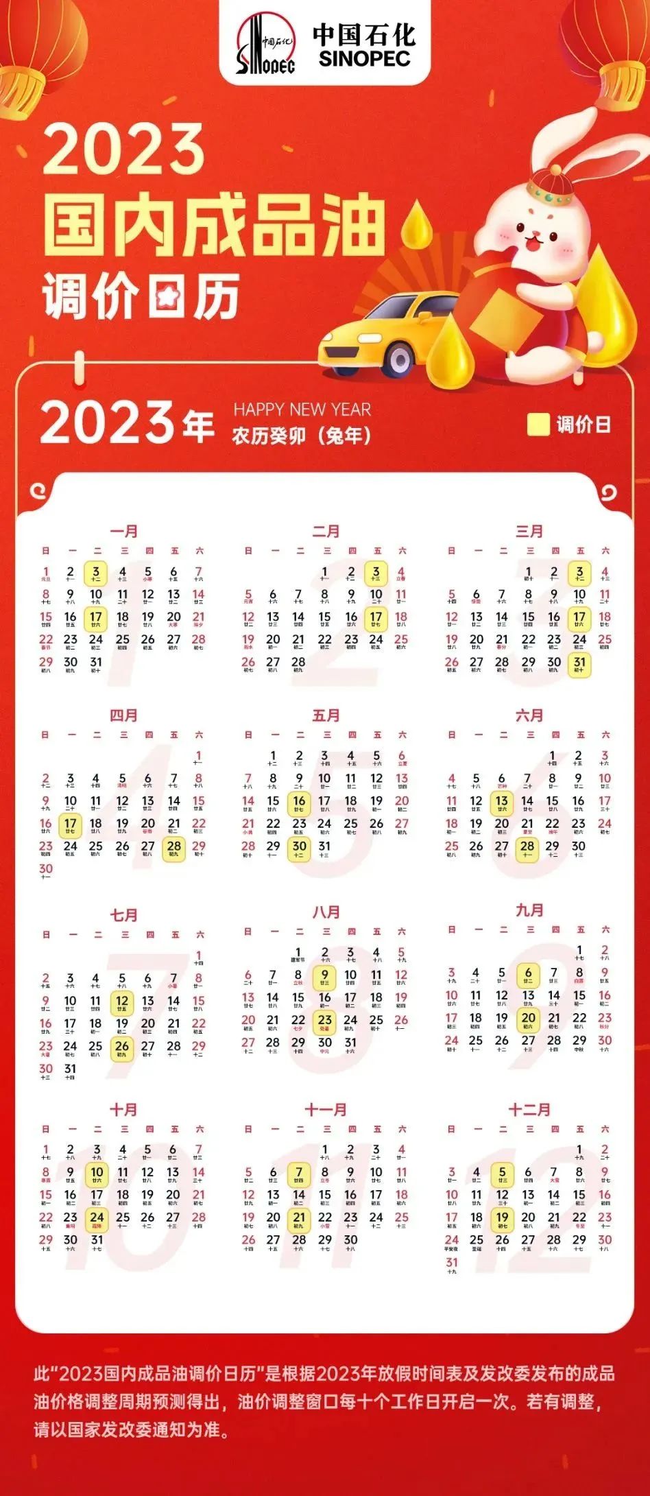 2023年的油價調整時間表出爐