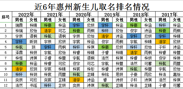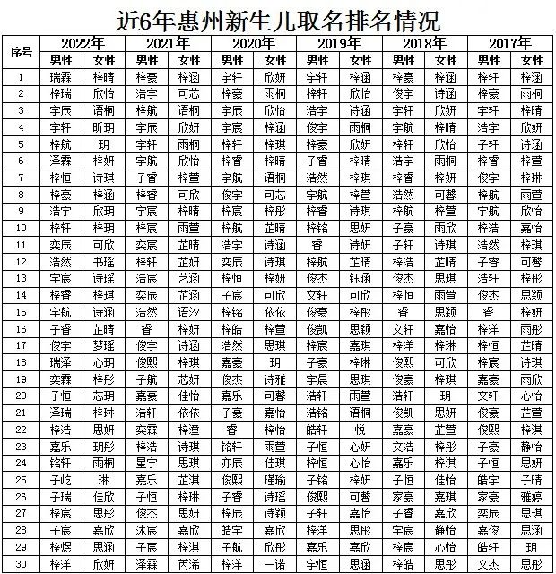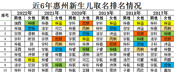 2022年惠州地區(qū)新生兒取名情況。