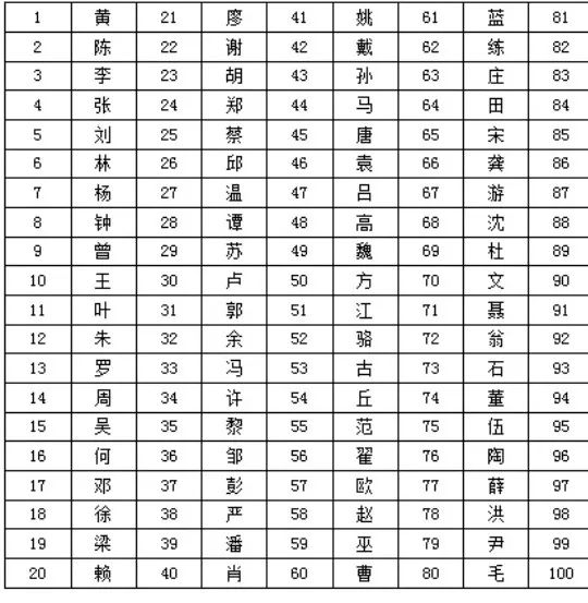 百家姓惠州排行榜、惠州重名排行榜。