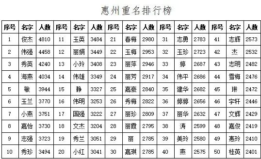 惠州重名排行榜
