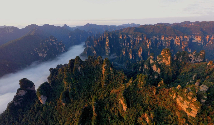 天門山國家森林公園共分為天門洞開、天界佛國、碧野瑤臺、覓仙奇境等四大景區(qū),其中包含了“天門洞開”“天界佛國”“懸梯浮嵐”等十大景觀和天門山索道、通天大道、天門洞、上天梯等50余處人文與自然景點。天門洞高131.5米,寬57米,深60米,南北對開,終年云蒸霞蔚,歷來有“天門吐霧”“天門靈光”“梅花飄雨”三大奇景。1999年,世界特技飛行大師駕機穿越天門洞,在全球引發(fā)轟動效應,天門洞從此世人矚目。