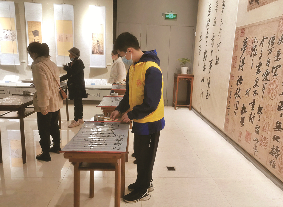 在特展廳中,市博物館還設有書法互動場景,方便市民現(xiàn)場臨摹“東坡體”,以書法藝術傳承東坡文化。書法臨摹現(xiàn)場,不時看到志愿者的身影。來自惠陽高級中學初中部的3位同學參加了這次特展的志愿者服務活動,他們負責維持現(xiàn)場秩序和講解工作。小志愿者們告訴記者,通過這次社會實踐活動,沉浸式感受惠州深厚的文化底蘊,對自己是一次很好的鍛煉。