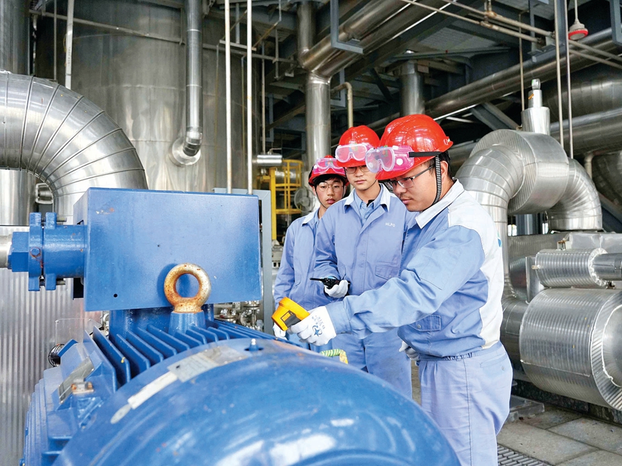 大年初五下午4時許,恒力石化(惠州)有限公司生產部氧化二車間乙班班長呂東龍帶著班員穿梭在裝置區(qū)的廊道及設備間開展巡檢,手中的測溫儀、測振儀是他們巡檢的“裝備”。管線有無泄露、腐蝕,設備運轉發(fā)出的聲音、溫度是否正常,聞到的氣味里是否有異常等等,經驗豐富的他們第一時間就可以察覺,然后再通過設備檢測得出準確數(shù)據。