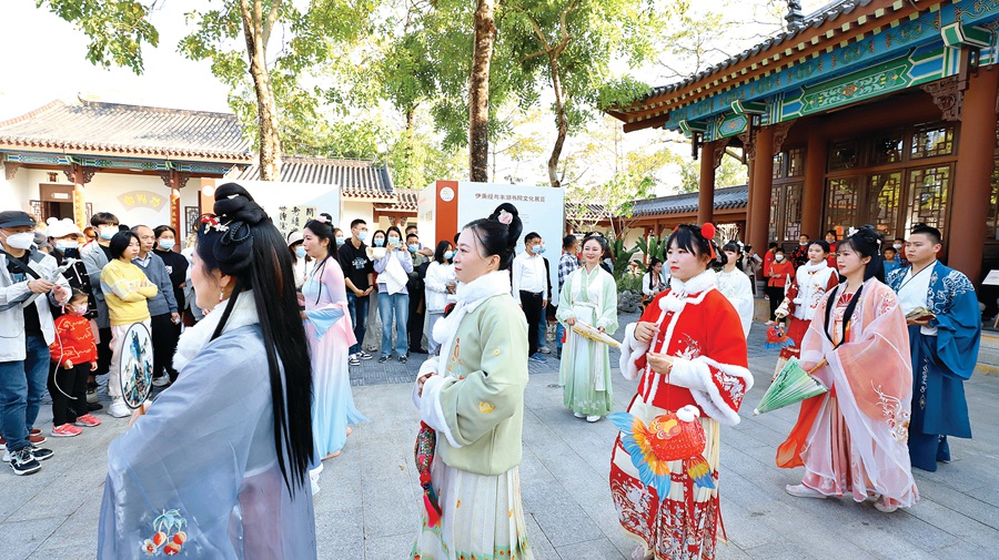市民欣賞漢服表演等文化活動(dòng);葜萑請(bào)記者鐘暢新 攝