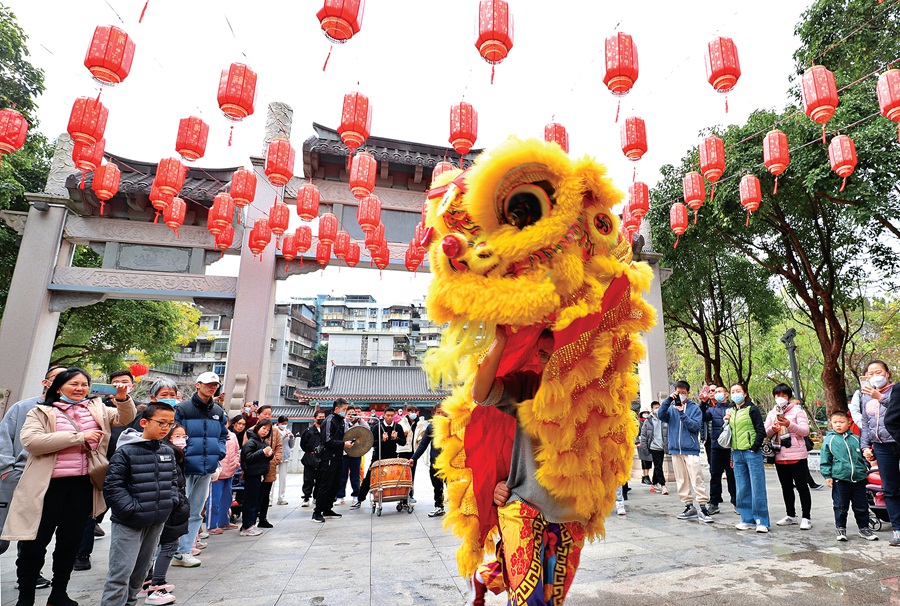 1月22日,大年初一,在惠州西湖景區(qū)豐湖書院,客家喜粄制作技藝、惠州市(鄧氏)神農(nóng)涼茶制作技藝、傳統(tǒng)臘腸臘味制作技藝、金鑲?cè)庵谱骷妓嚨确沁z傳統(tǒng)技藝均有展示,讓前來豐湖書院游玩的市民游客免費(fèi)品嘗美食。