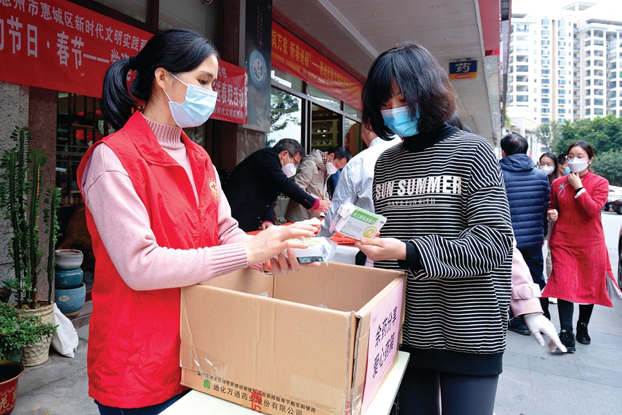 惠州開展“有余藥請分享,你需‘藥’大家?guī)汀惫婊顒樱嗨幑蚕砩钊肴诵。依托全?394個文明實踐中心(所、站),我市共籌集發(fā)放布洛芬、對乙酰氨基酚等退燒藥44.7萬粒,抗原檢測試劑8000份,中成藥7萬份,覆蓋全市200余個小區(qū),為20余萬群眾解了燃眉之急。