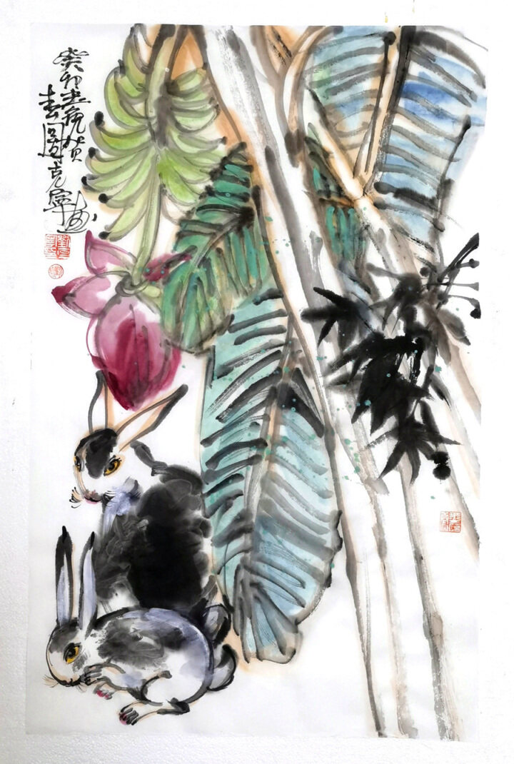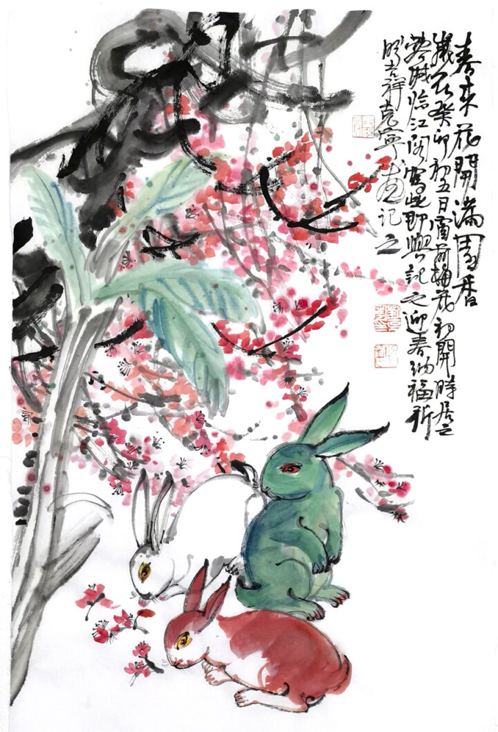 壬寅過,卯兔來,又是一年冬去春又來。近期,當代著名畫家、惠州日報社旗下惠州國畫院高級藝術顧問劉克寧用丹青迎春,企盼吉祥,創(chuàng)作了不少玉兔吉祥圖,用中國傳統(tǒng)繪畫文化迎接新春的到來。