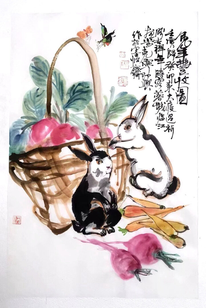 在中國傳統(tǒng)文化中,兔往往被視為一種祥瑞之物。它既是卯時之神,寓意吉祥,也是長壽的象征,自古就有“嫦娥奔月,玉兔拜!钡膫髡f,它帶給我們豐富的聯(lián)想。卯年畫兔,更是別有一番情趣。