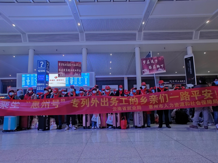 1月30日(初九)下午5時許,一趟搭載著300余名云南籍務工人員的“惠州號”專列G2924次順利抵達深圳北站,這是今年惠州首趟務工人員返崗專列,也是繼1月27日首架黔西南州務工人員返惠返崗包機之后的又一關愛務工人員、保障企業(yè)復工復產的舉措,將持續(xù)推動惠州大規(guī)模有組織務工人員節(jié)后有序返崗一波接著一波,一浪高過一浪。列車到站后,該批務工人員在惠州市人社部門的統(tǒng)一組織安排下,乘坐大巴安全返回惠州各企業(yè),實現(xiàn)了從“家門口”到“車門口”到“廠門口”的精準接送,保障企業(yè)的節(jié)后用工需求。