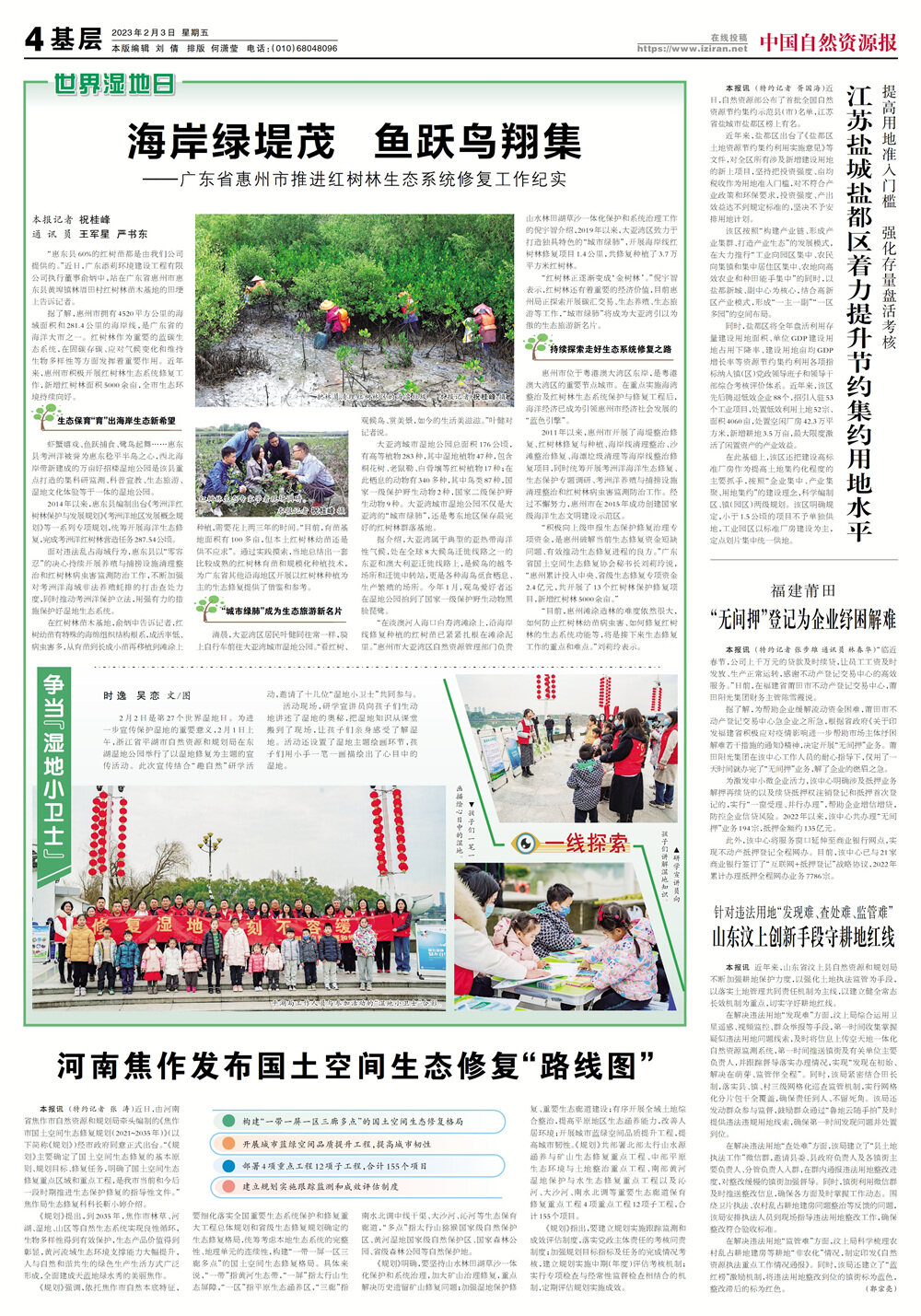 2023年2月3日,《中國(guó)自然資源報(bào)》刊發(fā)題為《海岸綠堤茂 魚躍鳥翔集》的文章,深度推介了惠州市推進(jìn)紅樹林生態(tài)系統(tǒng)修復(fù)工作的措施成效。全文如下,敬請(qǐng)關(guān)注!