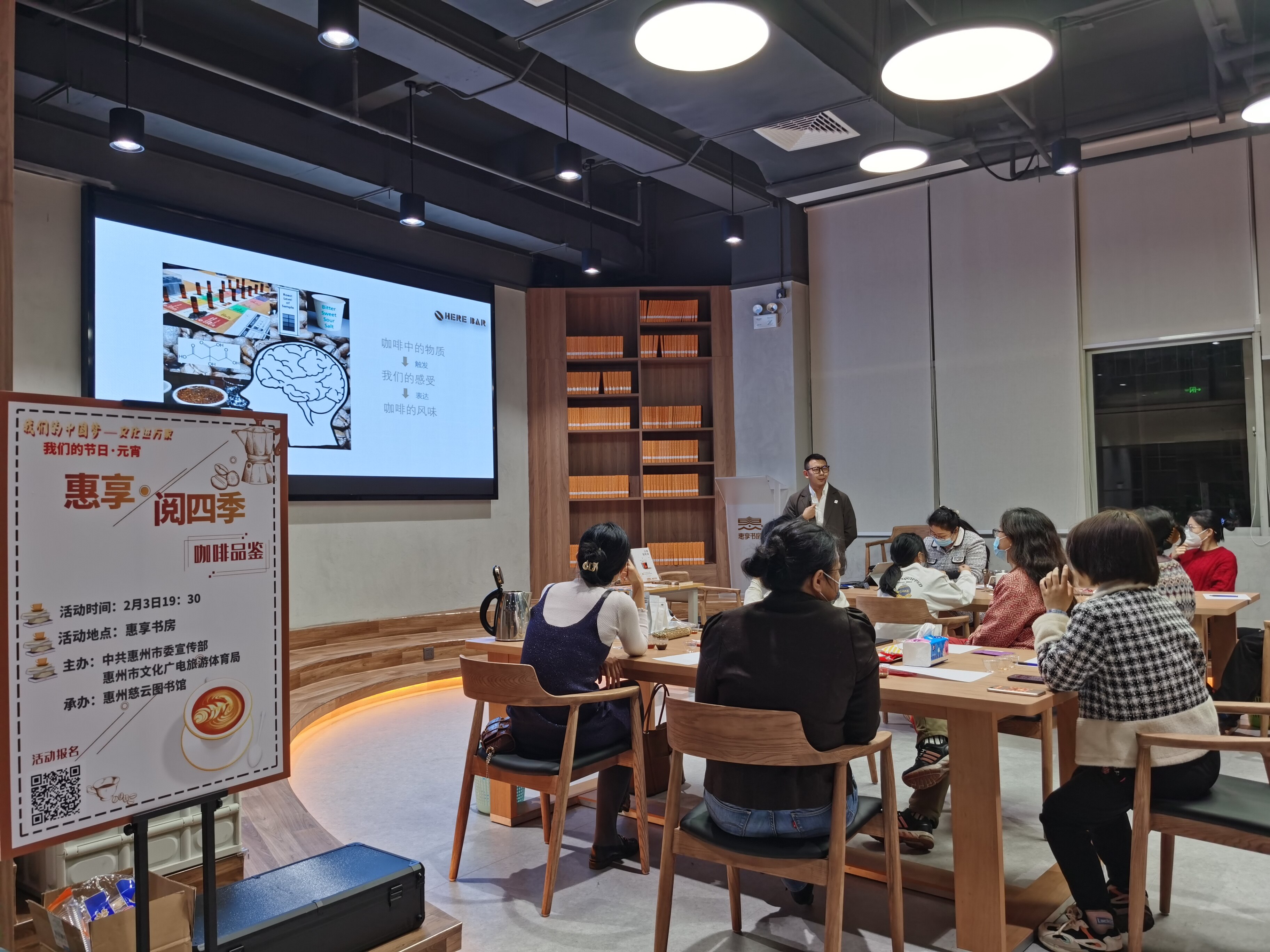 2月3日晚上,在中共惠州市委宣傳部、惠州市文化廣電旅游體育局指導(dǎo)下,惠州慈云圖書館在惠享書房成功舉辦惠享·閱四季首場“咖啡品鑒分享”活動。