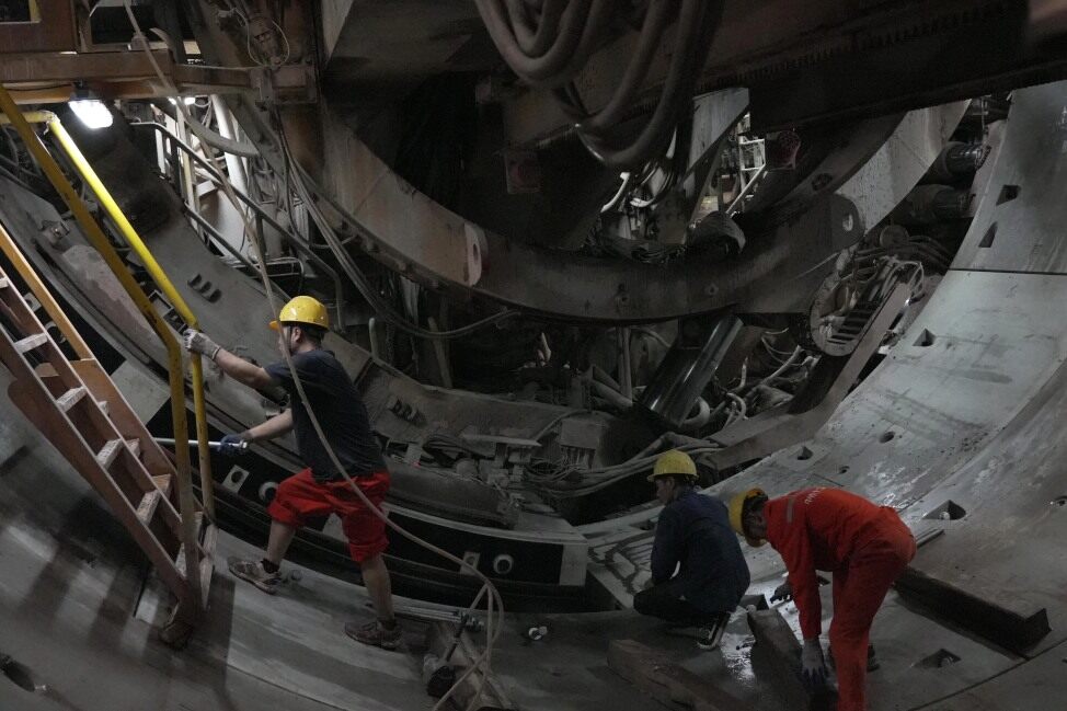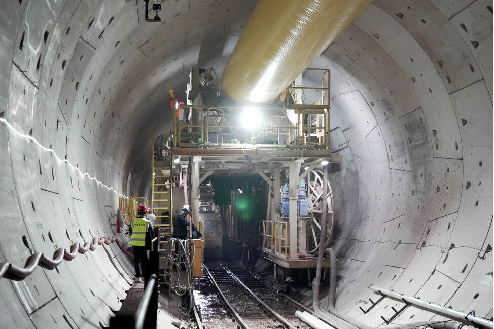 施工人員在盾構(gòu)隧道內(nèi)作業(yè);葜萑請笥浾邨罱I(yè) 攝