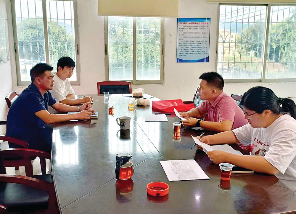 監(jiān)督站工作人員走訪(fǎng)村委會(huì)。
