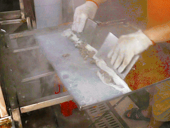 用“鐵盒子”蒸煮的腸粉見(jiàn)得多,那用竹子編制而成的簸箕用于腸粉蒸煮,你又見(jiàn)過(guò)嗎?