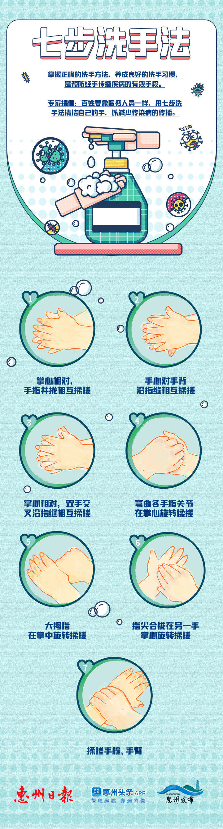 “保持良好的手衛(wèi)生,是預(yù)防諾如病毒感染和控制諾如病毒傳播最重要和最有效的措施!被葜菁部靥嵝汛蠹乙B(yǎng)成良好的飲食衛(wèi)生習(xí)慣,生吃瓜果要洗凈,多喝開水才健康,不食生冷半熟品。保持良好的手衛(wèi)生,飯前便后要洗手,牢記七步洗手法。同時(shí),盡量避免前往人群密集的場(chǎng)所,多鍛煉身體。值得注意的是,酒精對(duì)諾如病毒無(wú)效,含氯消毒劑對(duì)諾如病毒最有效。