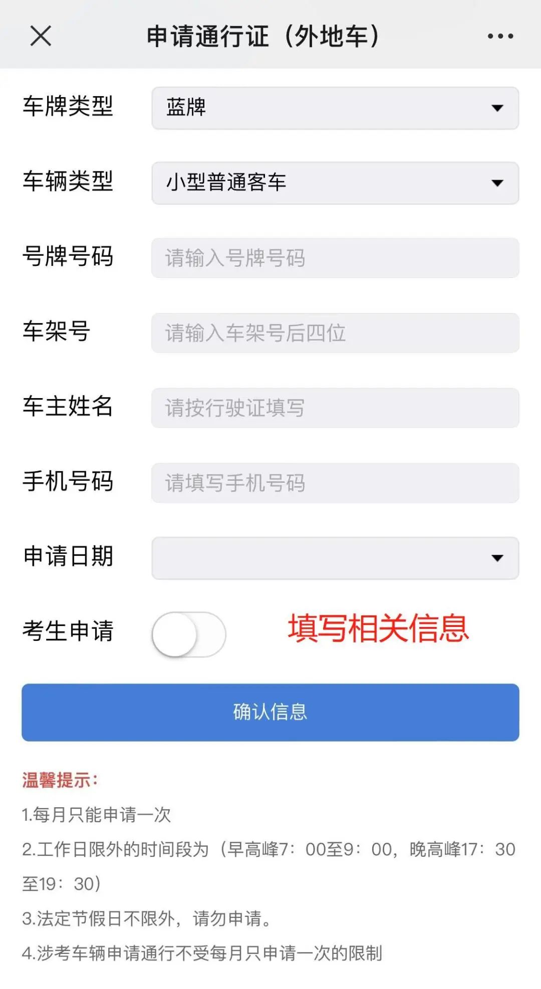 4.涉考車輛可以申請(qǐng)6月7日、6月8日、6月9日的通行(不受每月只申請(qǐng)一次的限制)。